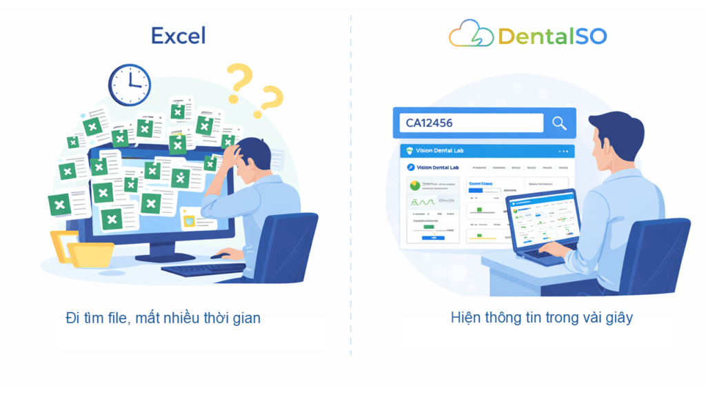 Thực tế, Excel không được thiết kế để quản lý dữ liệu tập trung và bảo mật cao. Chỉ cần một thao tác nhầm lẫn của nhân viên, toàn bộ lịch sử đơn hàng có thể bị xóa sạch hoặc sai lệch thông tin bệnh nhân. Những nhầm lẫn này không chỉ gây ra sai sót tai hại trong quá trình sản xuất, dẫn đến lãng phí vật liệu, mà còn trực tiếp làm xói mòn uy tín của Labo đối với các nha khoa.
